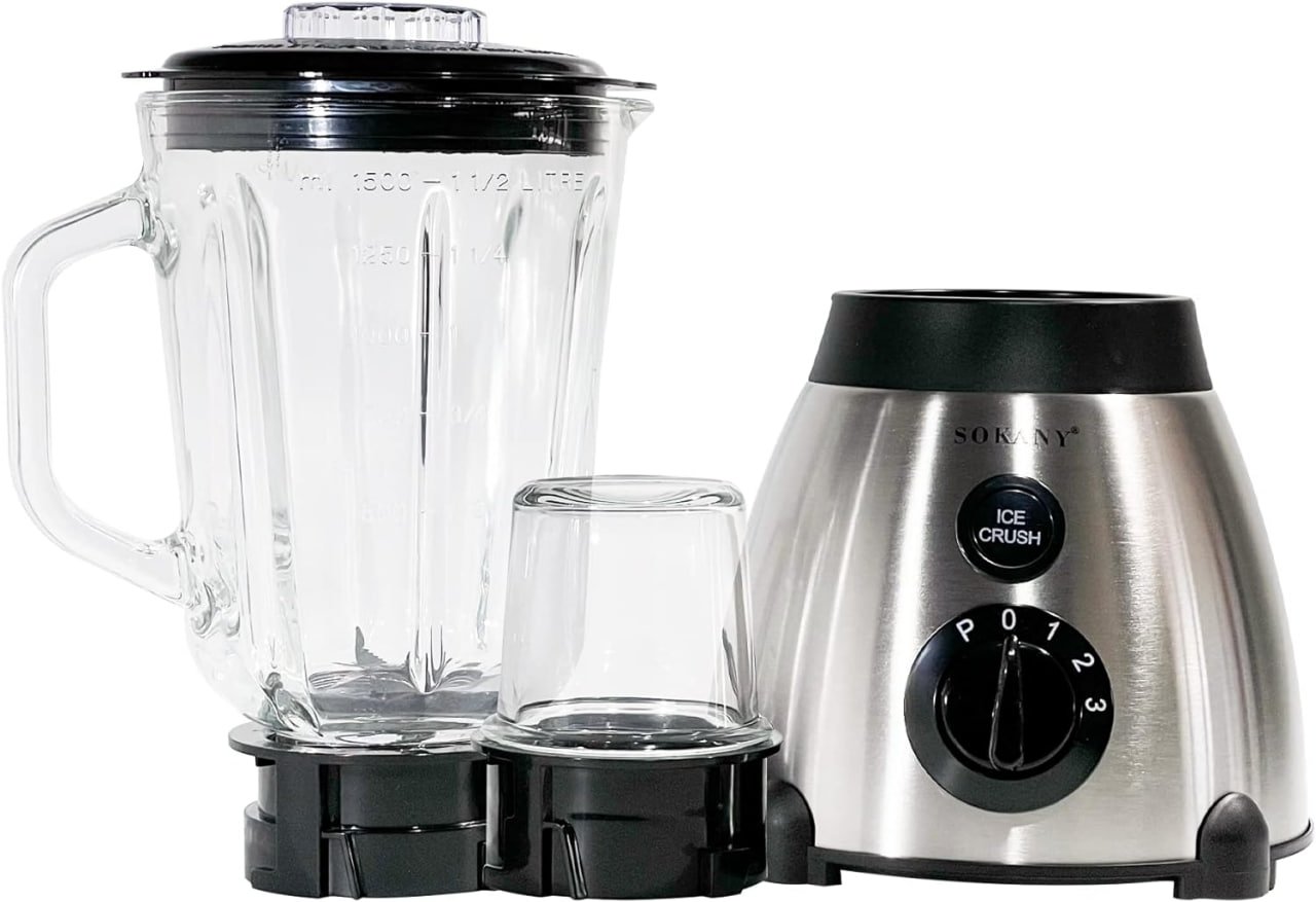 • Jarra grande transparente (aproximadamente 1,5 L) con marcas de medición, ideal para smoothies familiares y jugos.